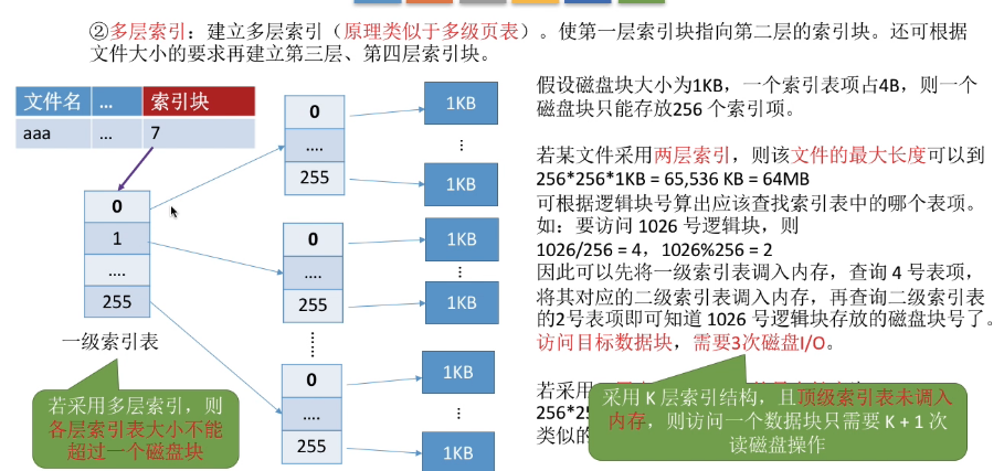 作为索引块的那个物理快存放该文件的各个(逻辑块号,物理块号)的对应关系